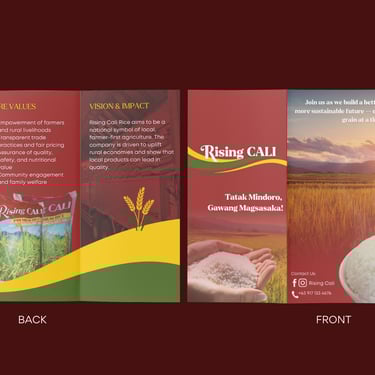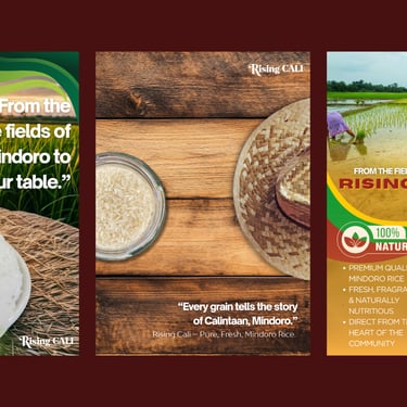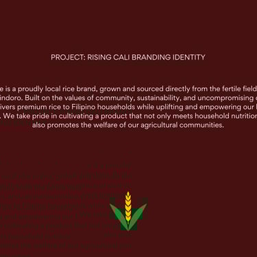 Rising Cali is a rice branding project created to support and uplift Filipino communities. The brand identity focuses on trust, quality, and accessibility—combining warm colors, clear typography, and culturally grounded design to reflect nourishment, growth, and local pride.