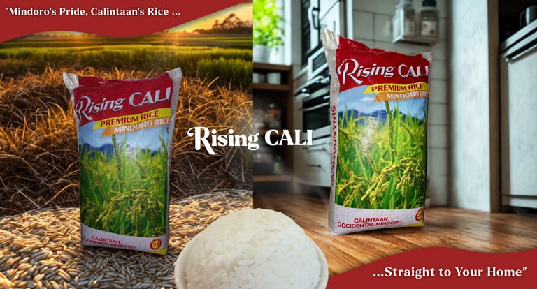 Rising CALI’s packaging features a striking red color known to stimulate appetite and symbolize passion for local produce. Accented with warm tones of yellow and orange, it represents the bright and hopeful future of Mindoro’s farming community. The rice imagery clearly communicates its authenticity, while the modern design sets it apart from traditional rice packaging bold, purposeful, and proudly Filipino.