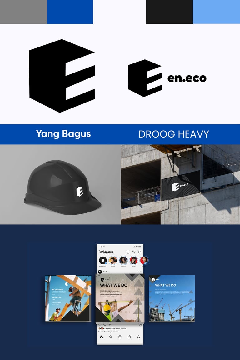 A construction company branding project featuring a modern, professional identity system applied to on-site and corporate materials.