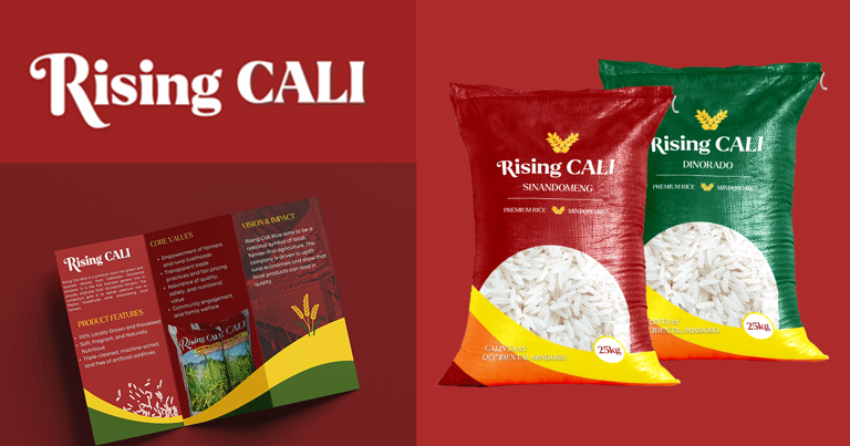 Rising Cali is a rice branding project created to support and uplift Filipino communities. The brand identity focuses on trust, quality, and accessibility—combining warm colors, clear typography, and culturally grounded design to reflect nourishment, growth, and local pride.